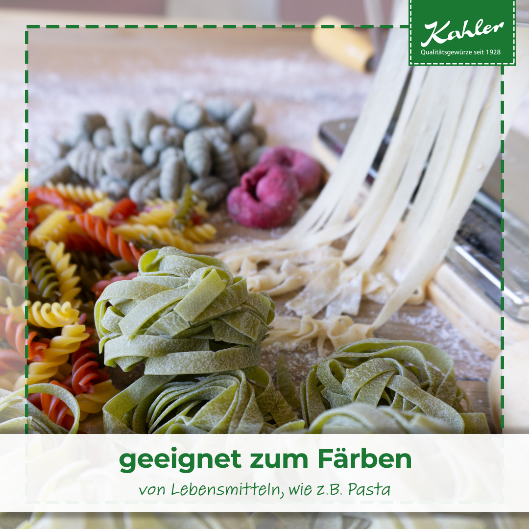 Ideal für das Hinzufügen in trockene Mischungen, Teige und Backwaren, ermöglicht Spinatpulver die einfache Einbindung von Farbe und Geschmack. Brot, Pasta, Kuchen oder Smoothies können auf diese Weise natürlich grüngefärbt werden. Das Spinatpulver löst sich dabei leicht auf und verteilt sich gleichmäßig. Dadurch wird es zunehmend bei der Herstellung von grün gefärbten Nudeln und gesunden Snacks eingesetzt. Auch in der veganen Küche findet das Pulver zunehmend Anwendung, indem es beispielsweise als Farbstoff für veganen Käse und andere pflanzliche Produkte dient. Zudem kann das Pulver Saucen und Suppen eine schöne Farbe geben, ohne zusätzliche Flüssigkeit hinzufügen zu müssen. Schließlich ist Spinatpulver ein optischer Hingucker und wird gerne beim Anrichten von Tellern für besondere Kreationen eingesetzt.